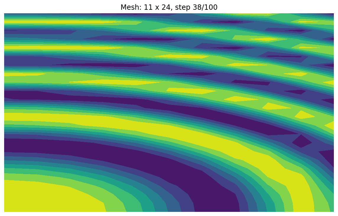 ax.set_title(f"Mesh: {nx} x {nyt}, step {j + 1}/{nsteps}")