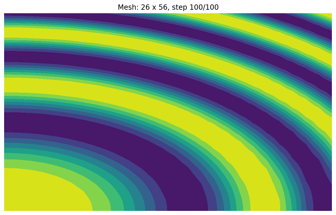 ax.set_title(f"Mesh: {nx} x {nyt}, step {j + 1}/{nsteps}")